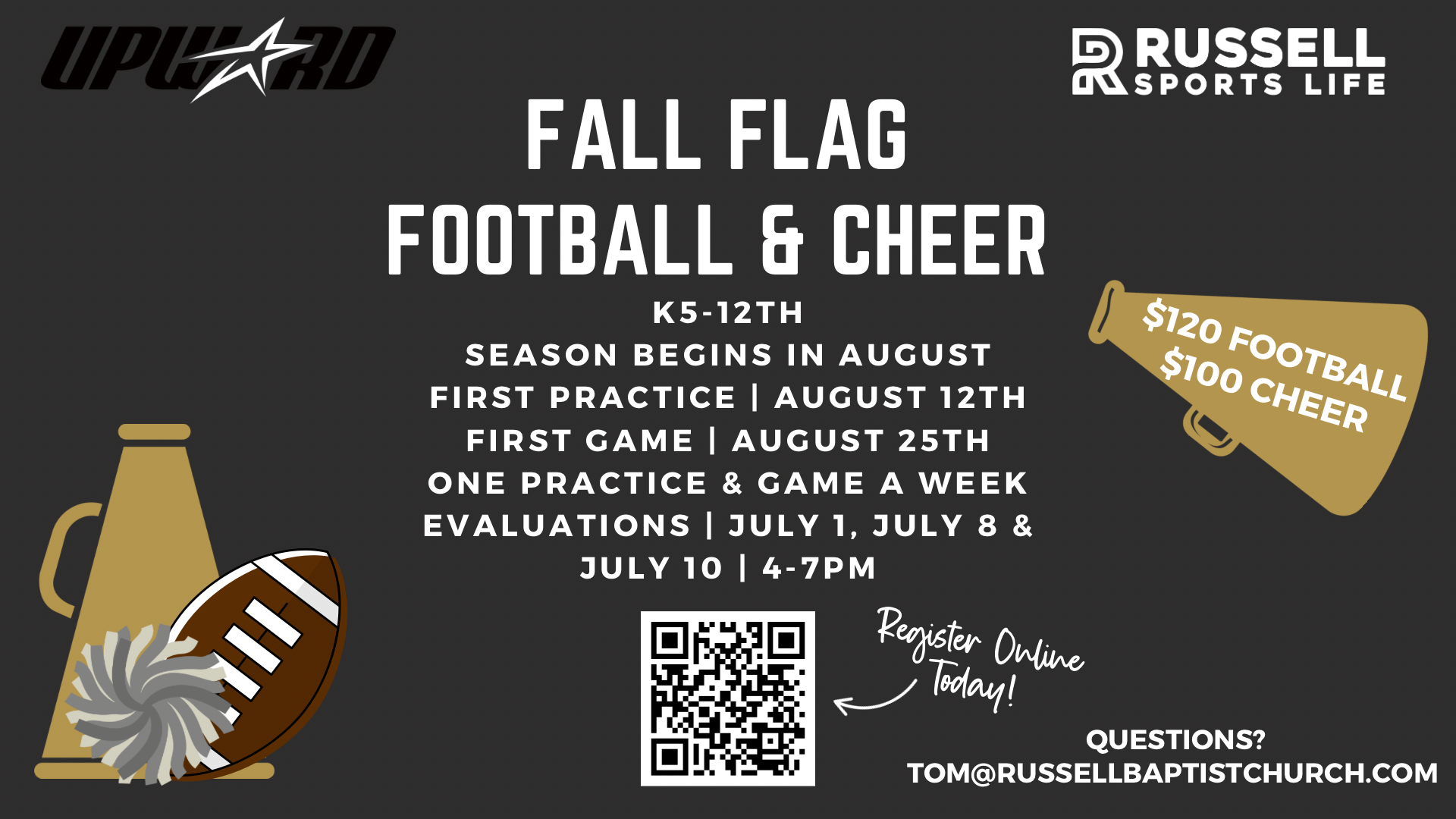 Russell Sports Life, in partnership with Upward Sports, exists to teach kids and students how to work together as a team, honor Christ with their actions, and develop healthy habits and goals! We have several annual sports programs, events, clinics, and camps. Check out the link below to see all of the current Sports Life events being hosted!